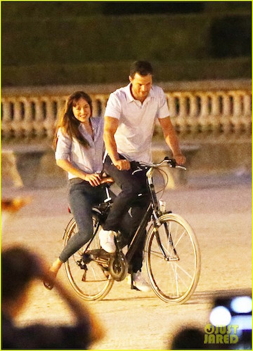 Actors Jamie Dornan and actress Dakota Johnson seen on the set of 50 Shades Of Grey in Paris, France.