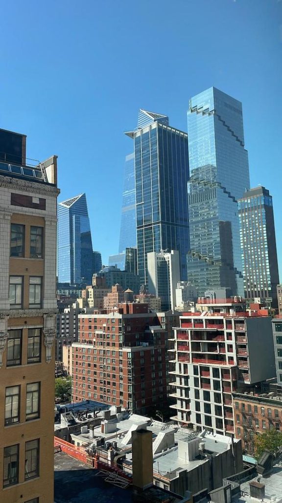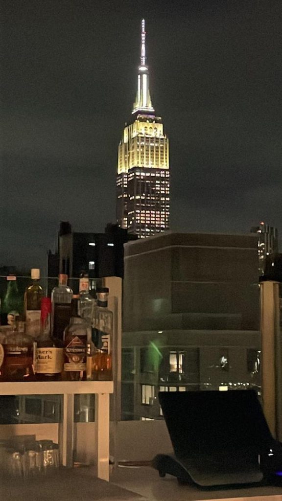 Me encanta ver os arranha-céus das ruas, mas quando vejo a majestosa cidade do alto de um terraço, fico ainda mais deslumbrada. Não importa quantas vezes já estive lá ou o tempo que morei lá, volto a ser apenas a menina adolescente que aterrizou em NY nos anos 80 e se deparou com aquela magia pela primeira vez. Uma sensação única que, honestamente, eu não tenho em Los Angeles, onde moro, ou no Rio, onde cresci. Tanto LA como o RJ são cidades que amo profundamente e onde tenho as minhas pessoas, mas tenho uma relação diferente com NY, que é uma fonte de inspiração pra mim, um lugar onde vivi momentos de virada na minha jornada e onde também encontro amigos queridíssimos, que marcaram a minha história.