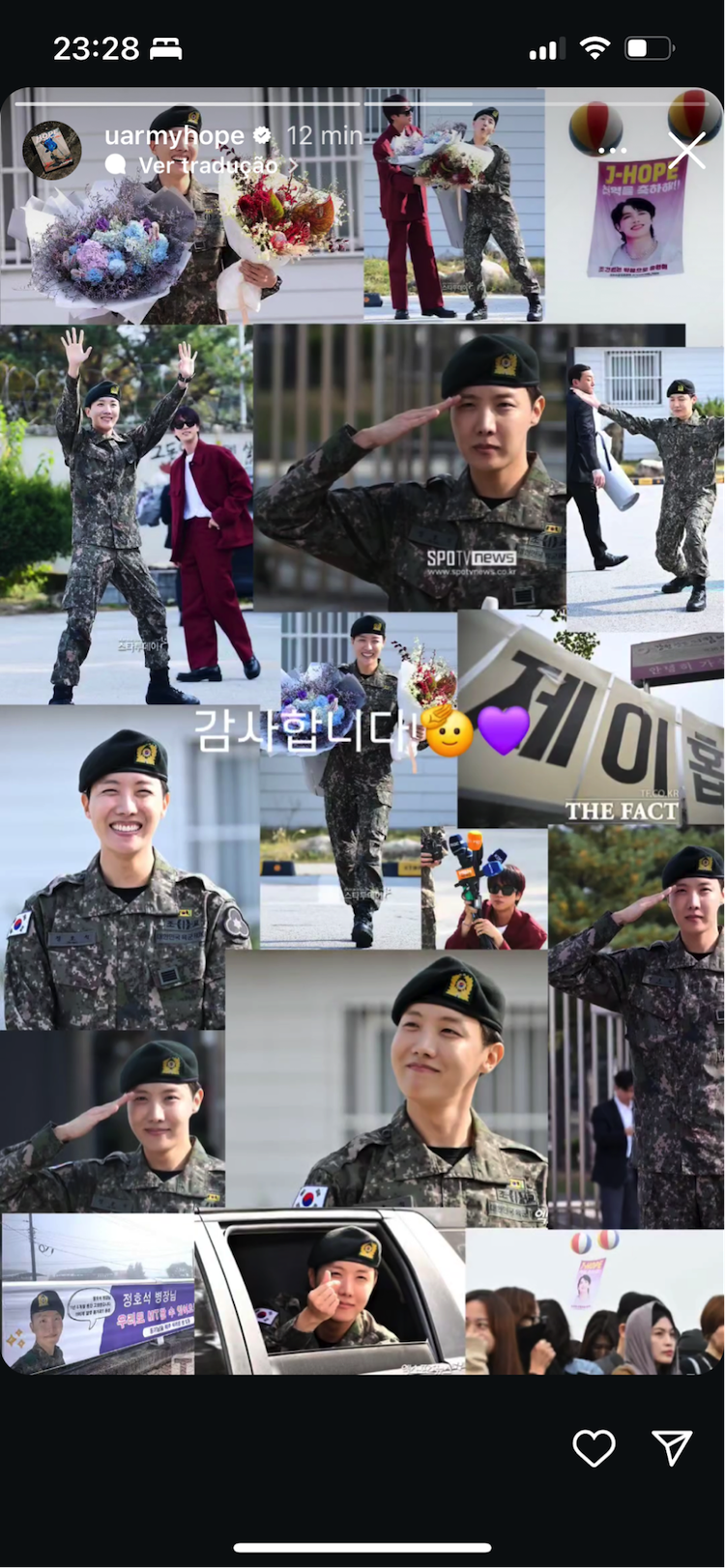 Jung Hoseok serviu seu tempo obrigatório no exército sul coreano e no mês de outubro foi liberado.