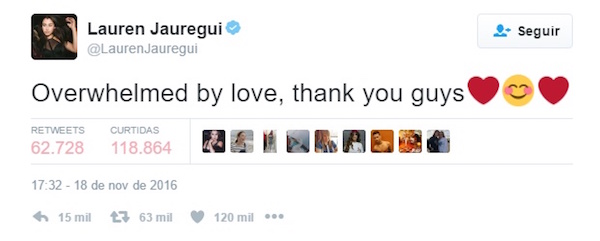 A declaração de Lauren gerou uma repercussão positiva em todo o mundo. A cantora recebeu grande apoio nas redes sociais e postou no Twitter a respeito: