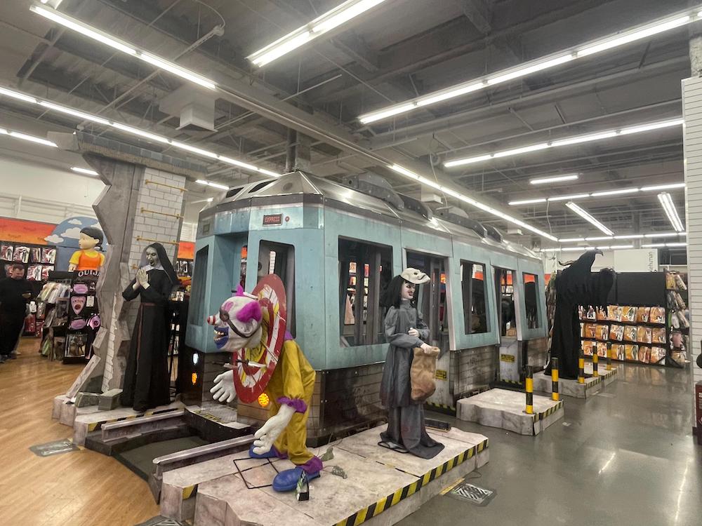 A loja mais parece um shopping, caprichou tanto nas instalações que incluem até um vagão de metrô, e oferece todos os tipos de fantasias e acessórios para pessoas de todas as idades, além de todos os tipos de decorações pra casa que vão do humor ao terror.