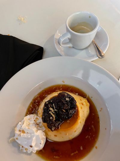 A gente se fartou com uma porção de coxinha de entrada, moqueca de peixe e camarão e eu encerrei com um manjar de coco (especial do dia) e um cafezinho expresso. Pra brindar a vida, uma cervejinha Xingu (mais leve que a que temos no Brasil) vendida com exclusividade no exterior. O melhor foi o preço super honesto para uma refeição pra lá de especial.