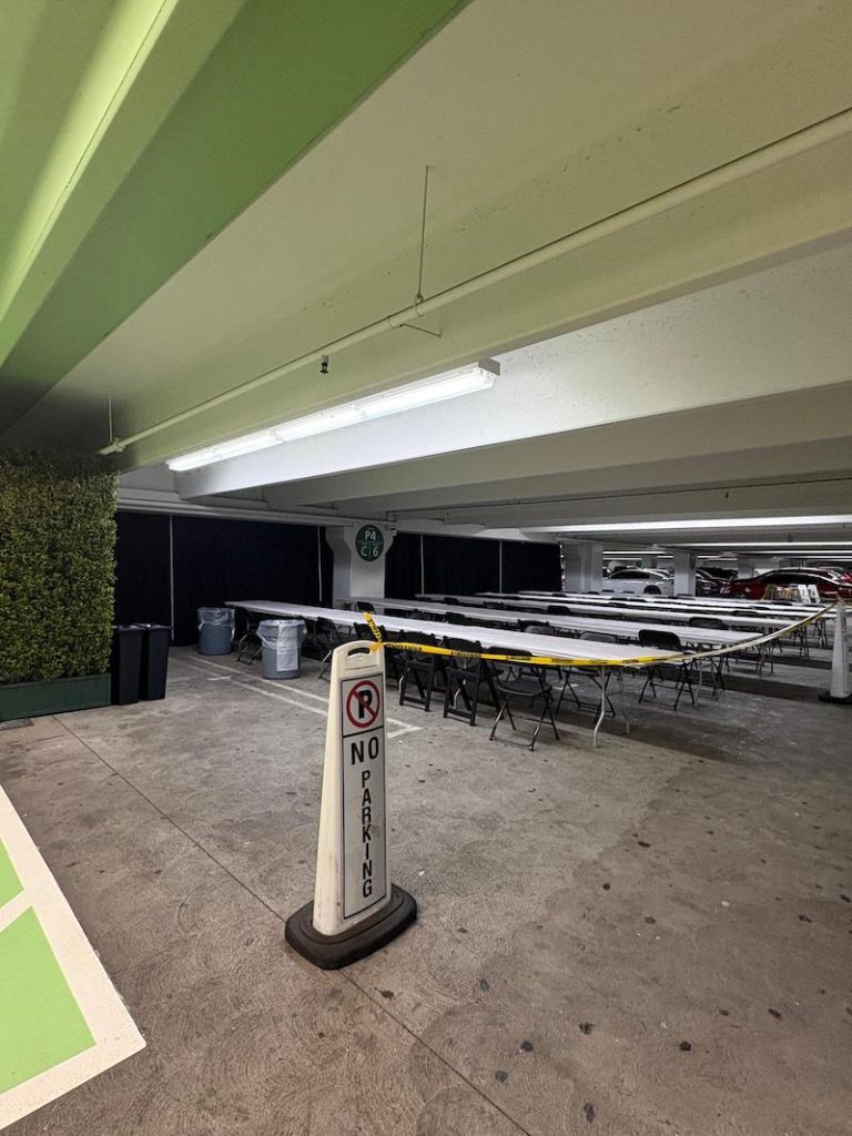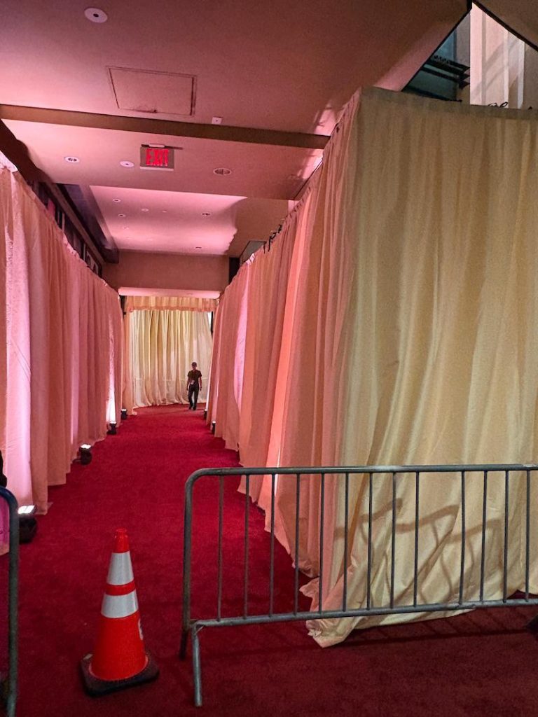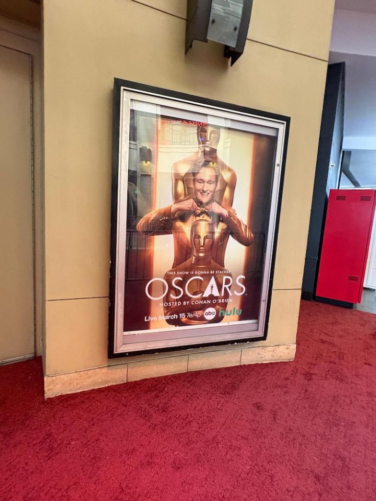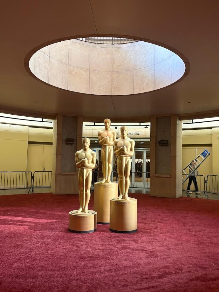 Compartilho aqui a realidade que é bem diferente do que vemos na TV. Muita gente talentosa trabalha arduamente para esconder as lojas e transformar o shopping e a Hollywood Boulevard no palco do Oscar. A cerimônia, nesse aspecto, também merecia uma estatueta, na categoria produção de arte. O povo capricha!