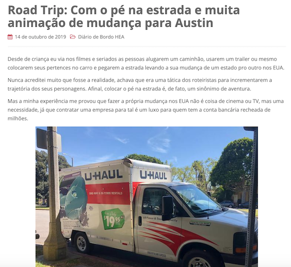 Mas, o grande evento, para mim, foi colocar o pé na estrada e, como a maioria dos norte-americanos, alugar um carro grande e trazer a minha mudança de Los Angeles para Austin, Texas, onde estou morando temporariamente.