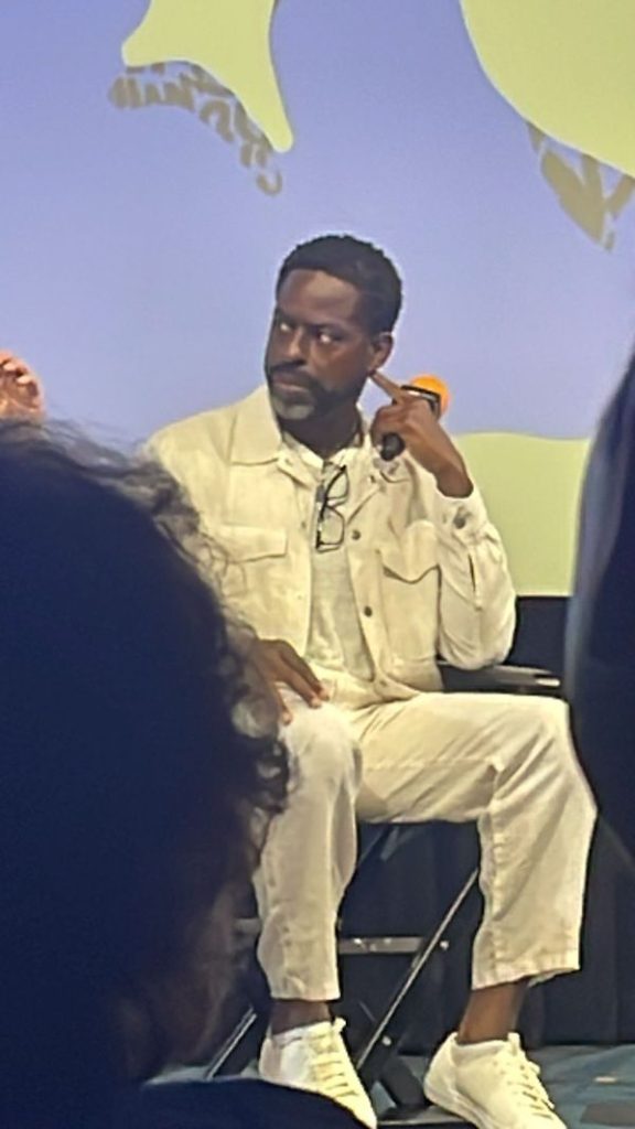 “Ah, isso é imprescindível pra gente”, disse Sterling, “passamos boa parte do nosso tempo no trabalho e ter um set saudável é nosso foco, tanto com o elenco, como com a equipe. Foi assim em ‘This Is Us’ e vai ser assim sempre com a gente. Aliás, rodamos o show em LA – muitos aplausos – porque a gente também queria ficar perto de casa e gerar trabalho para os profissionais na nossa cidade”. Mais aplausos. “Eu confesso que essa é uma vantagem de ser produtor executivo, posso opinar mais até no local de gravação”.