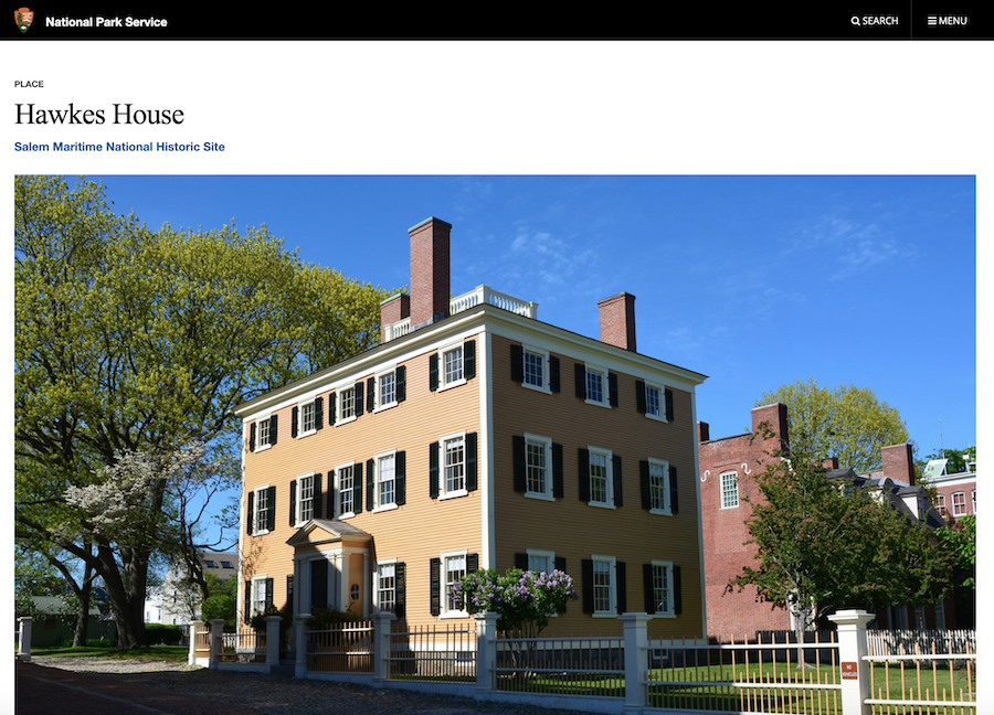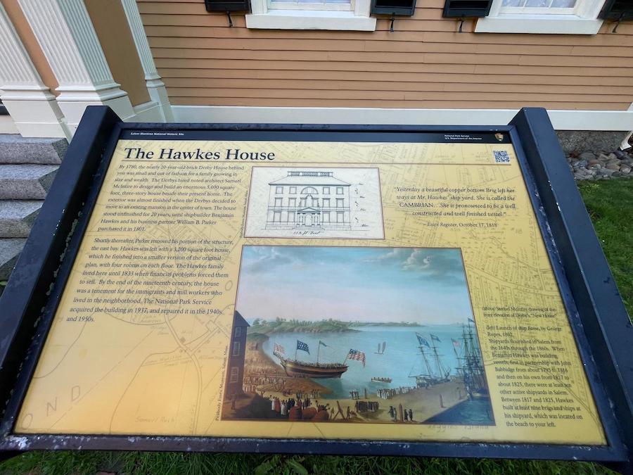 Projetada por Samuel McIntire (1751-1811), um dos primeiros e mais influentes arquitetos dos Estados Unidos, a Hawkes House foi encomendada, mas nunca habitada, por Elias Hasket e Elizabeth Derby. A construção do prédio começou em 1780, porém os Derbys nunca concluíram a casa. Em vez disso, mudaram-se da zona portuária para uma casa no centro da cidade. Benjamin Hawkes (1766-1854), um construtor naval, contava com muitos dos comerciantes de sucesso de Salem entre seus clientes. Ele comprou e alterou a casa inacabada em 1800. A Hawkes House é um belo exemplo das grandes casas construídas em Salem no final do século XVIII e início do século XIX. Esses edifícios quadrados de três andares geralmente apresentavam uma entrada lindamente esculpida e pintada e com muitas janelas para permitir a entrada de luz e ar nos quartos elegantemente decorados.