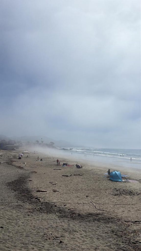 Como já falei anteriormente, a experiência da praia na Califórnia é completamente diferente da experiência que temos no Brasil. Além da água fria, da areia escura, geralmente venta muito na costa oeste perto do mar, por isso é comum a gente ver a galera de casaco, tanto em séries e filmes e ao vivo e a cores.