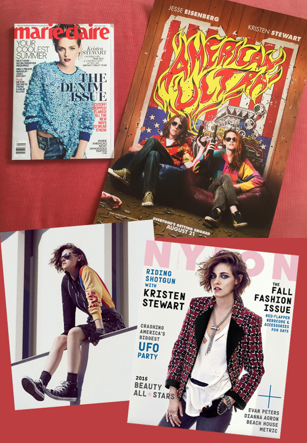 Para celebrar a nova fase de Kristen e seus devotos fãs, o Hollywood é Aqui faz uma promoção imperdível: valendo as revistas Marie Claire e Nylon e o pôster do “American Ultra” que ganhamos na Comic Con 2015.